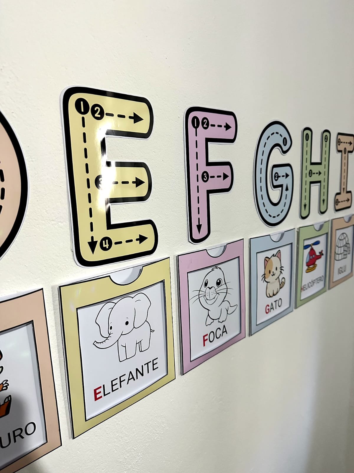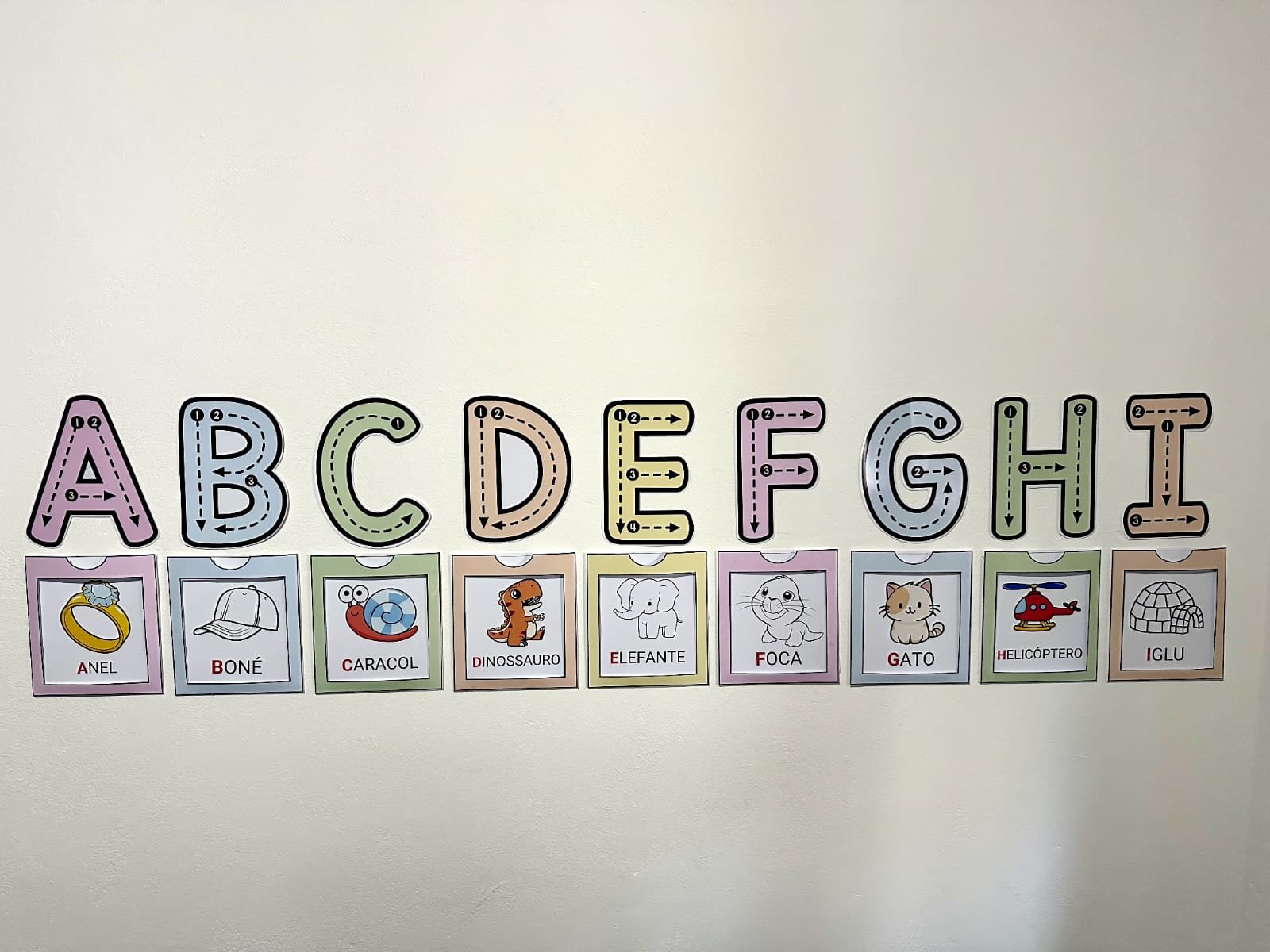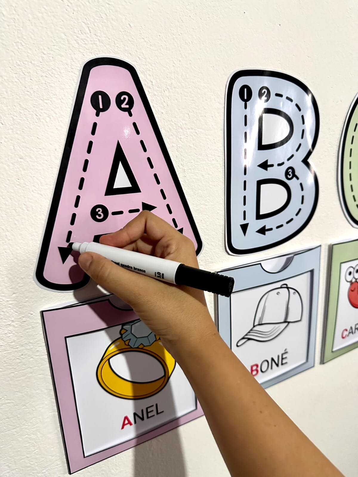 ✅️Você também pode deixar esse recurso em um espaço de altura acessível para as crianças, assim elas podem utilizar as letras gigantes para treinar os traçados. Para isso é necessário passar o papel contact nas fichas. Com esse recurso suas aulas ficarão encantadoras e as crianças irão adorar aprender o alfabeto.