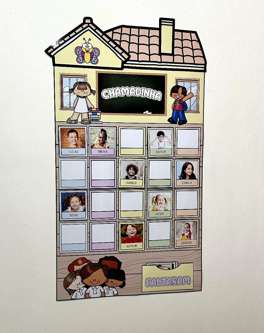 ✅️O cartaz também tem um bolsinho para você colocar os crachás dos alunos que faltaram. Essa chamadinha está muito linda não pode faltar na sua sala de aula!