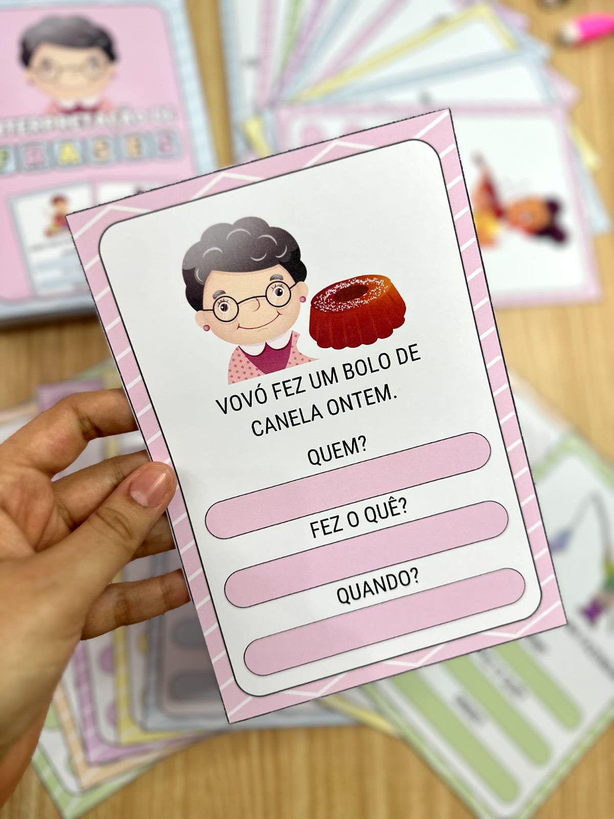 ⏩️O arquivo Interpretação de frases inclui 20 frases para leitura e interpretação, e uma caixinha para guardar o material.