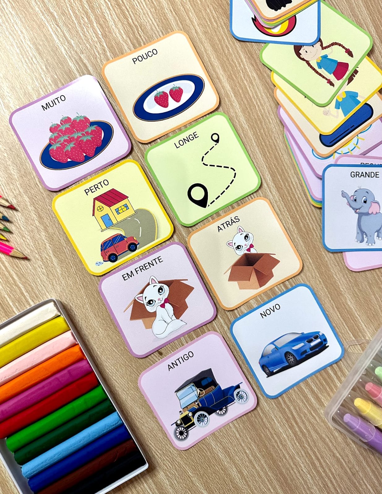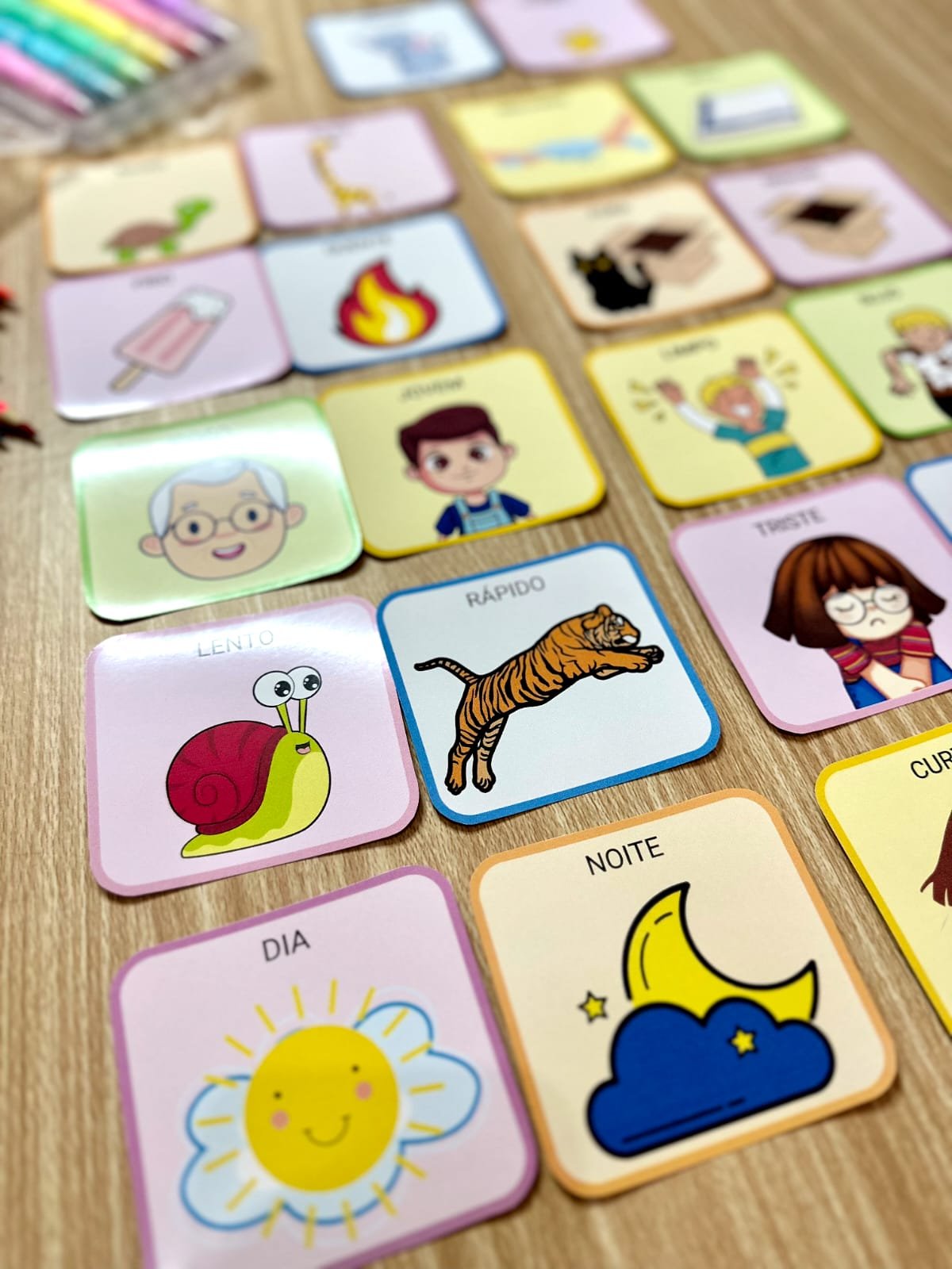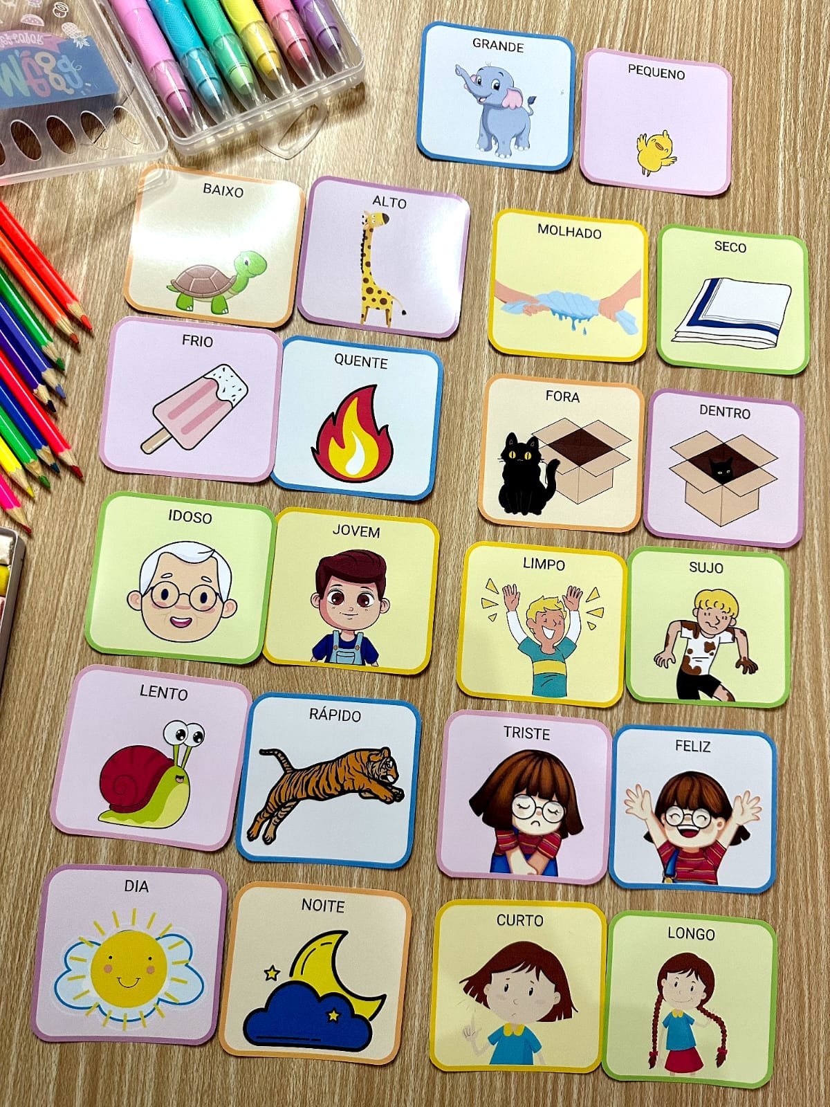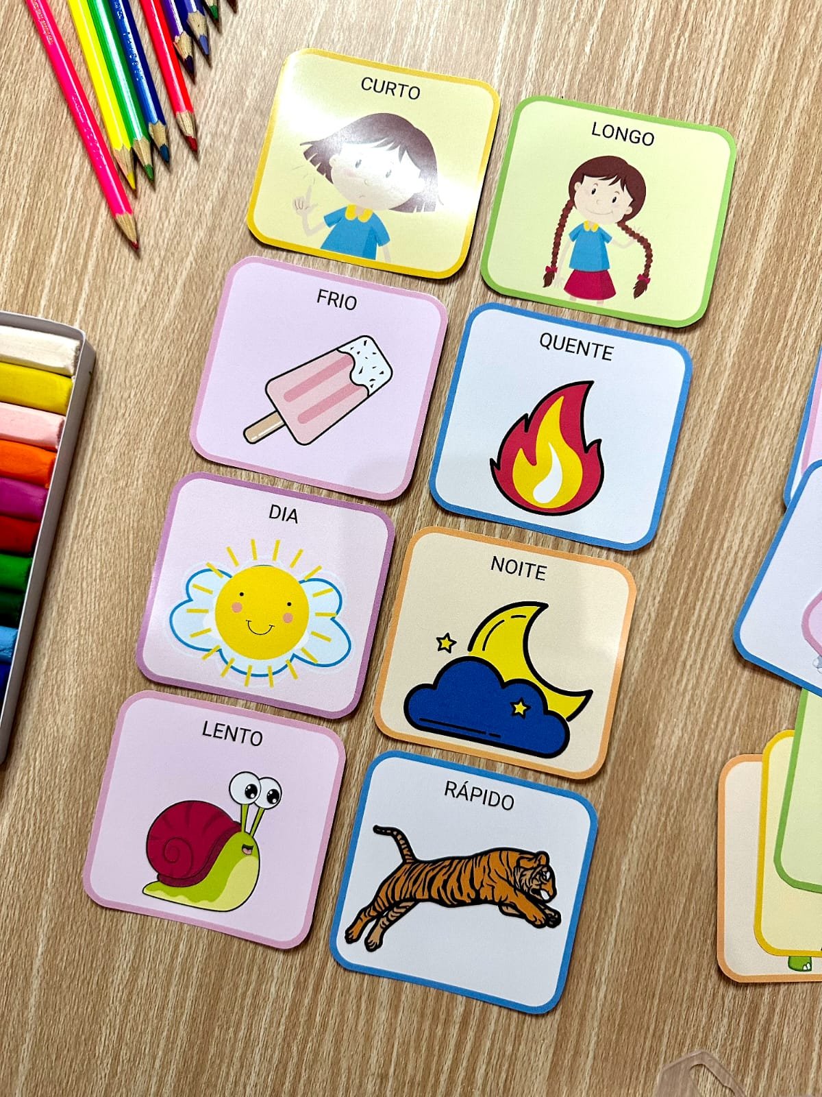 ⏩O arquivo Jogo da Memória Opostos inclui 15 paresde cards com imagens de conceitos opostos, para trabalhar com crianças apartir de 3 anos. Esse recurso é excelente para